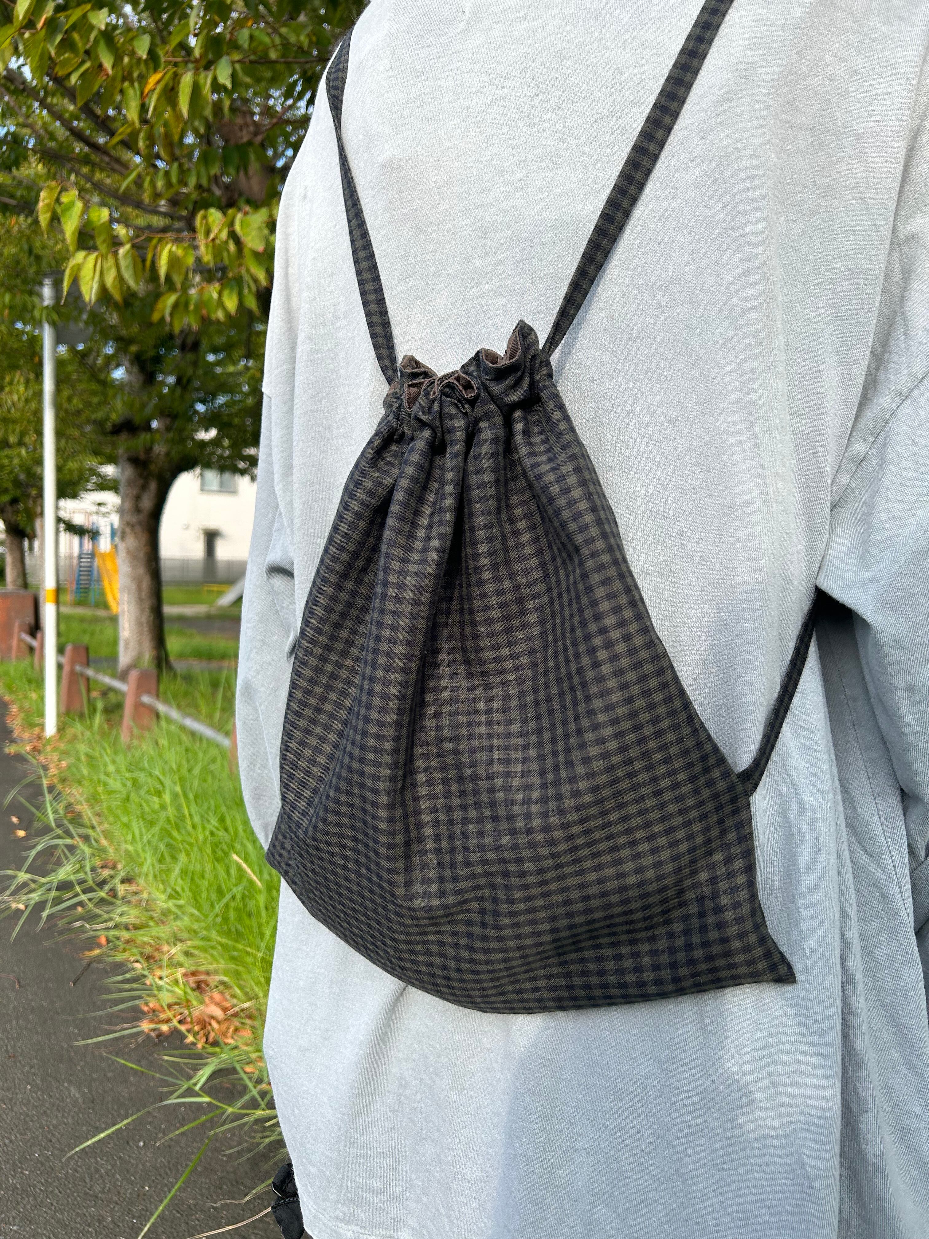 ナップサック カーキチェック